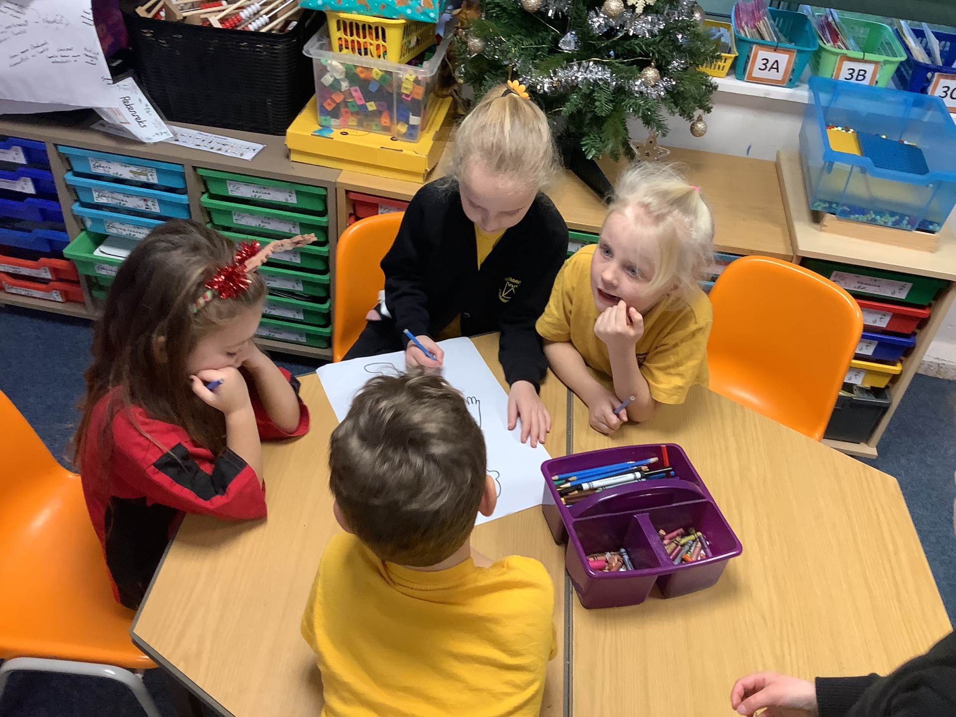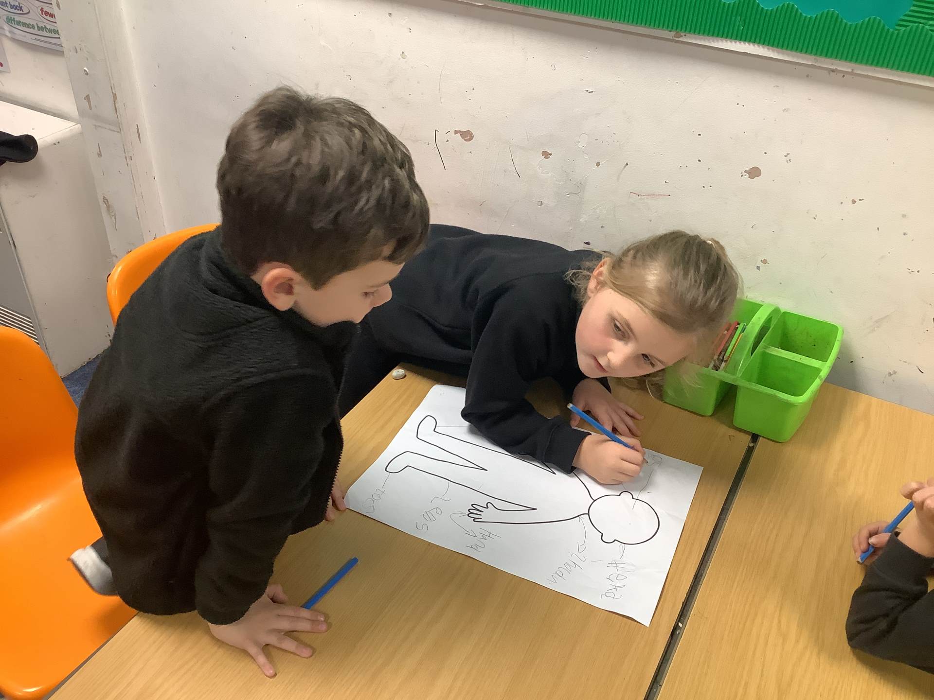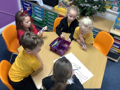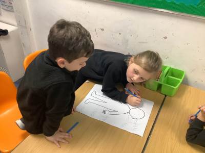 This week (WC 08.12), we have been looking at the human body and senses! The children worked together to label parts of the body on a human outline, while also thinking about which parts use different senses.