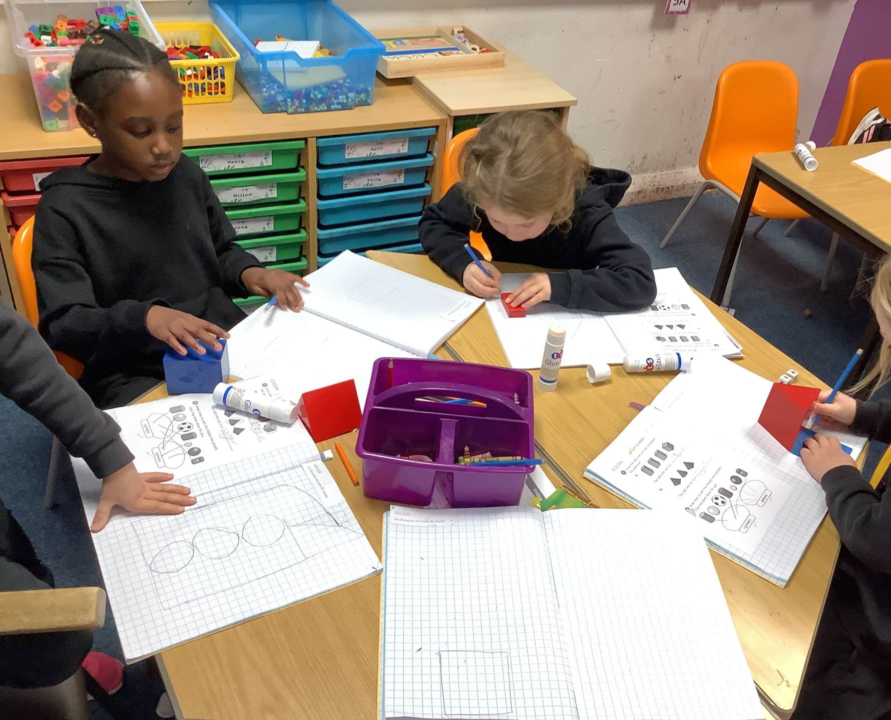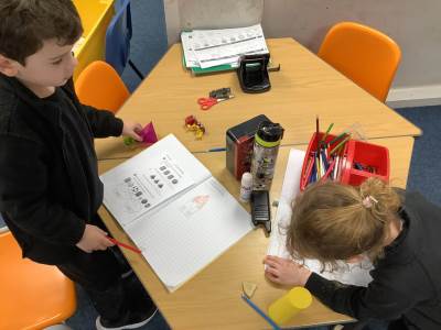 In maths, we started the term by looking at shape and naming 2D shapes. The class used the faces of 3D shapes and objects to create a picture, before counting how many of each shape featured in their picture and whether any shapes not mentioned had been added in as well.