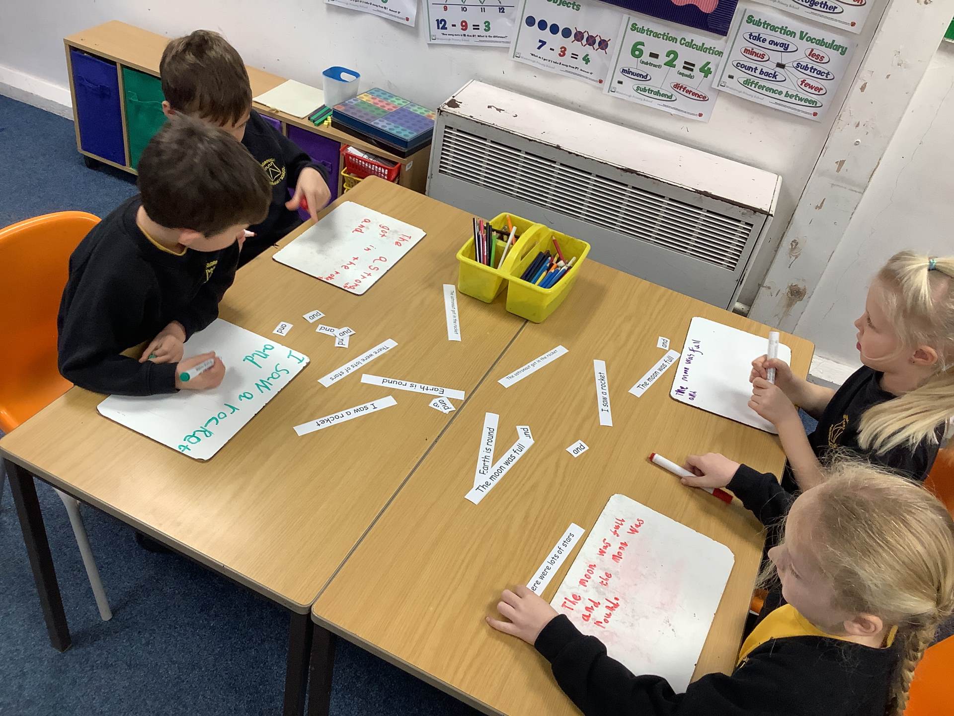 This week (WC. 12.01) Conker class were learning how to combine two clauses using the conjunction 'and'. Some pairs had to join together the two clauses that best fit and then re-write the sentence in full using 'and', while others had just one clause and had to continue the sentence to include 'and'.