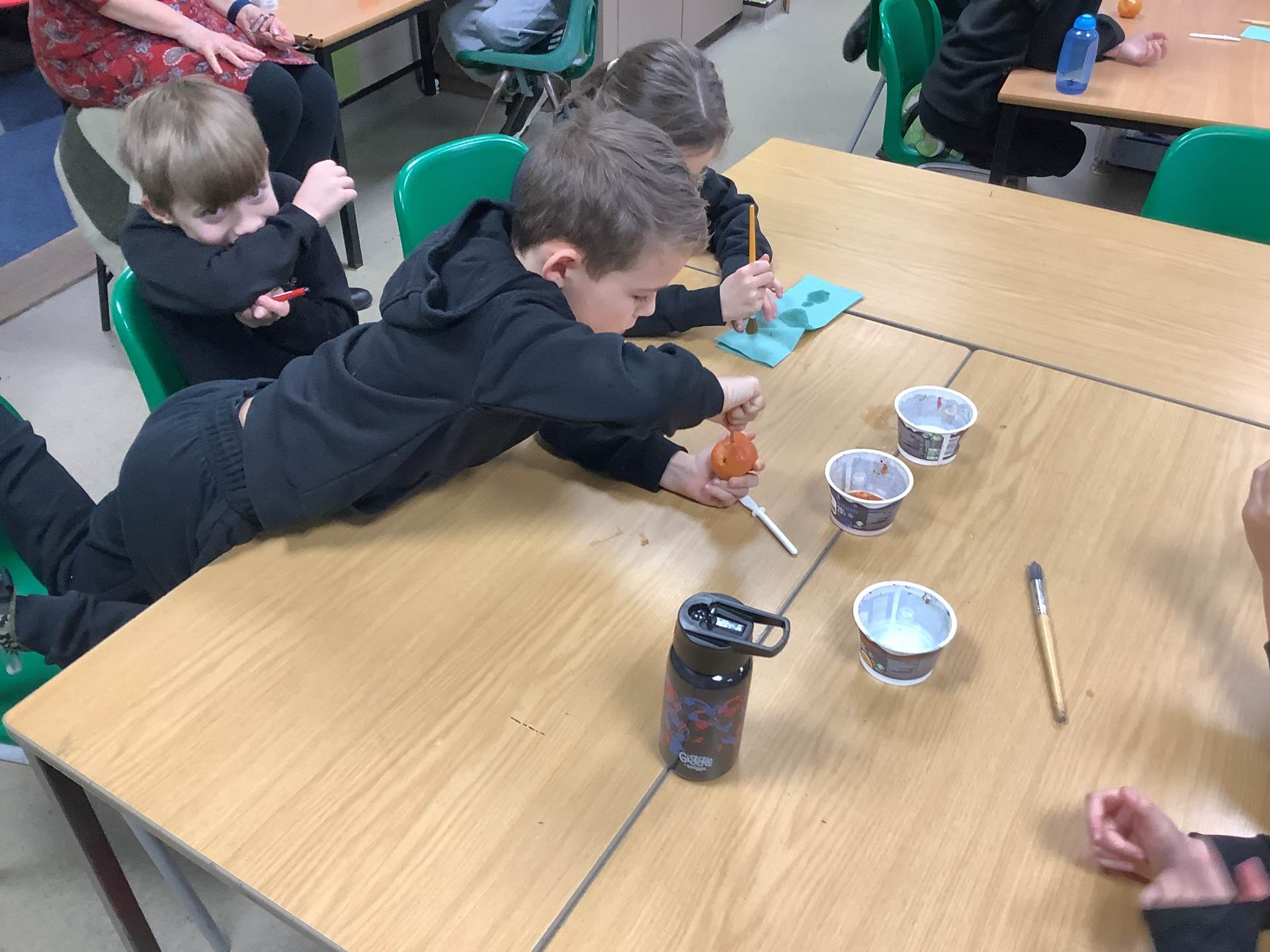 In Art, the children have been learning and creating art which has been inspired by Jackson Pollock. The children have created a piece of digital art following Jackson Pollock's style of drip painting. In English, the children have been creating sentences which include subordinate clauses. To support the class, the children mummified a tomato and then wrote sentences based on the steps they took.