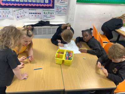 This week (WC 08.12), we have been looking at the human body and senses! The children worked together to label parts of the body on a human outline, while also thinking about which parts use different senses.