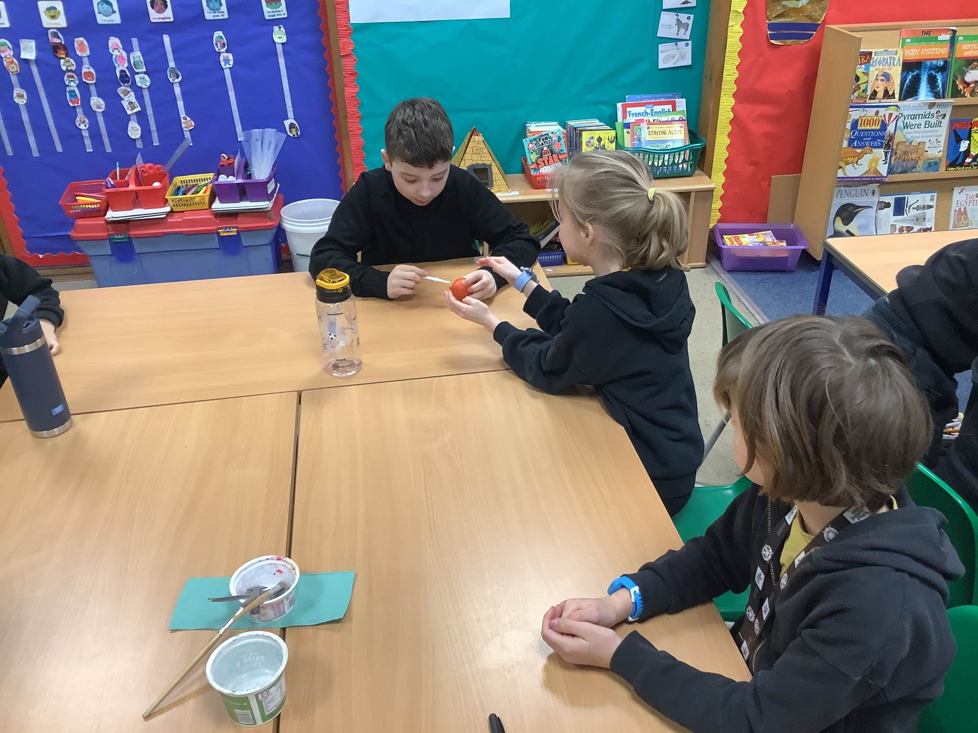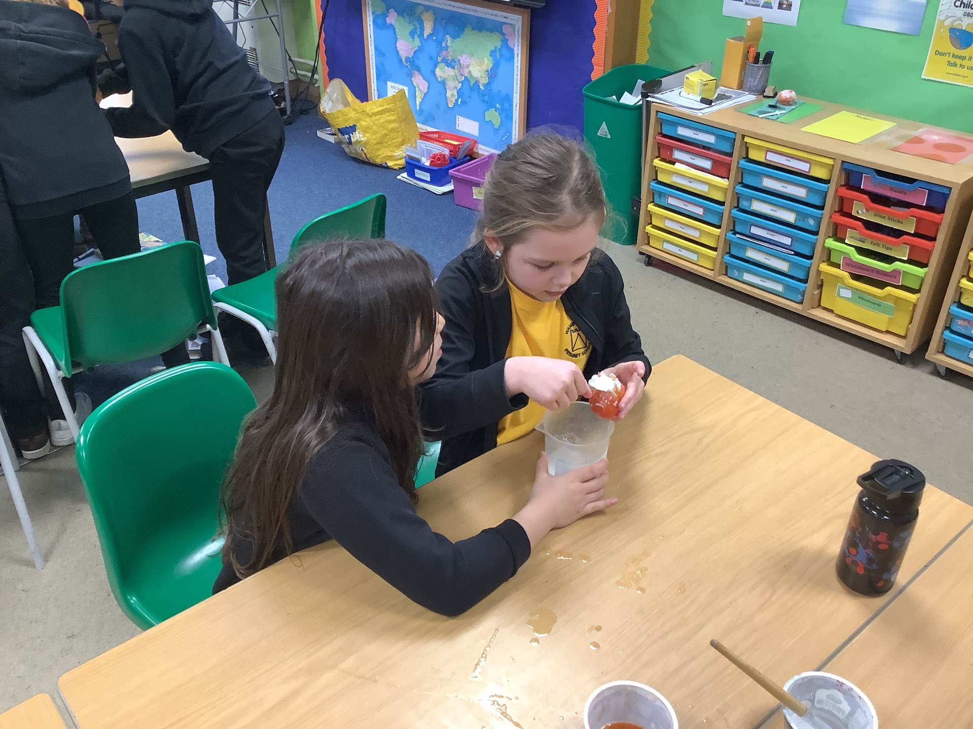 In Art, the children have been learning and creating art which has been inspired by Jackson Pollock. The children have created a piece of digital art following Jackson Pollock's style of drip painting. In English, the children have been creating sentences which include subordinate clauses. To support the class, the children mummified a tomato and then wrote sentences based on the steps they took.