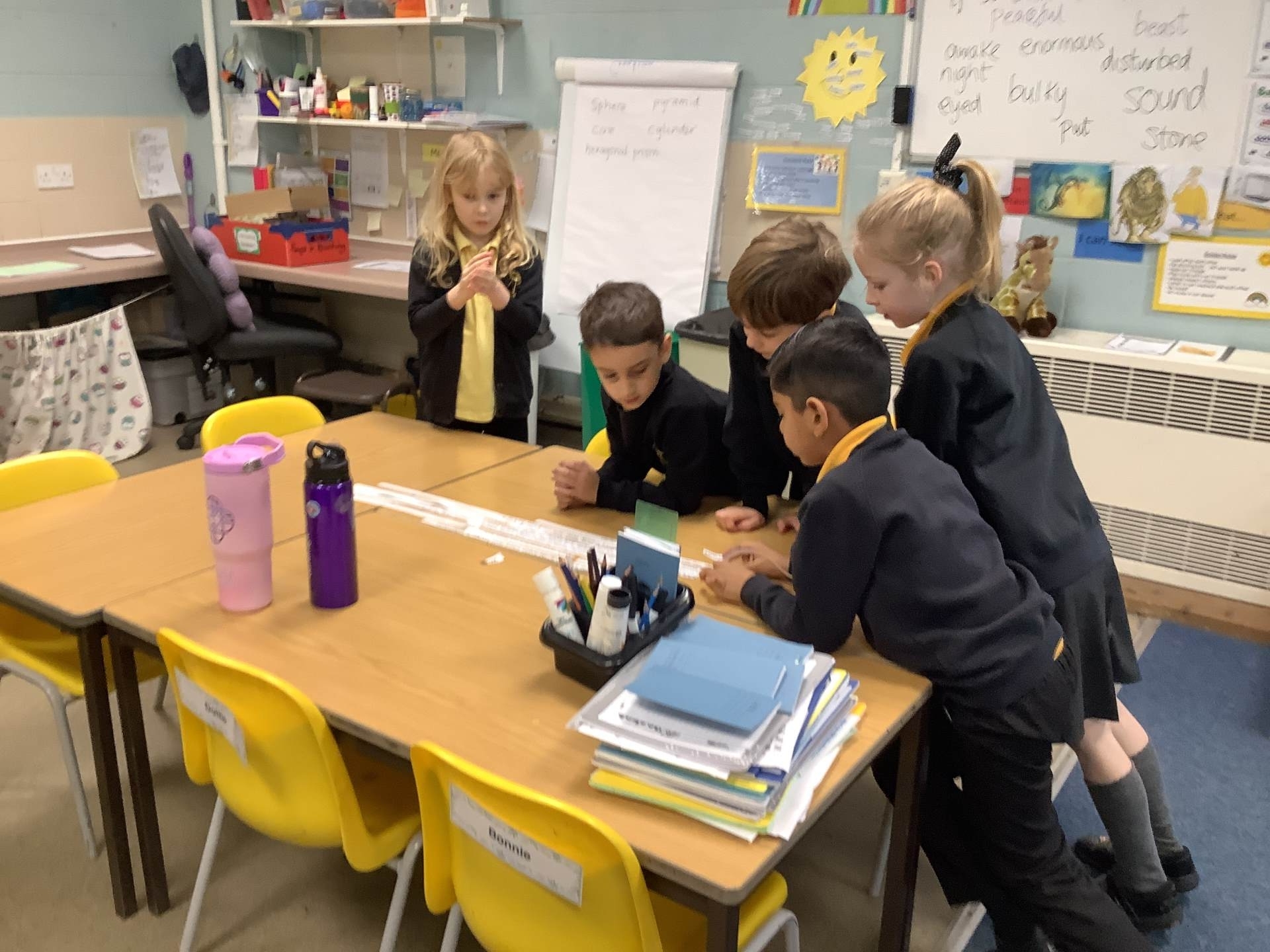 In Maths, they have been learning about 3‑D shapes and identifying their key features, including vertices, edges and faces.